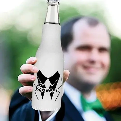 Crafted from high-quality, thick neoprene, these cooler sleeves aren't just for show. They provide excellent insulation to keep 12oz cans and bottles perfectly chilled and prevent annoying condensation from making hands wet or tables messy. The flexible, stretchable fabric ensures a snug fit that won't get loose over time. It’s the small detail that makes a big difference, upgrading the party and giving the entire groom's team a gift they’ll appreciate long after the wedding is over.