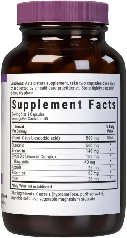 Key Features | 500 mg quercetin, 500 mg vitamin C, 140 mg bromelain, non-GMO, vegan, kosher |