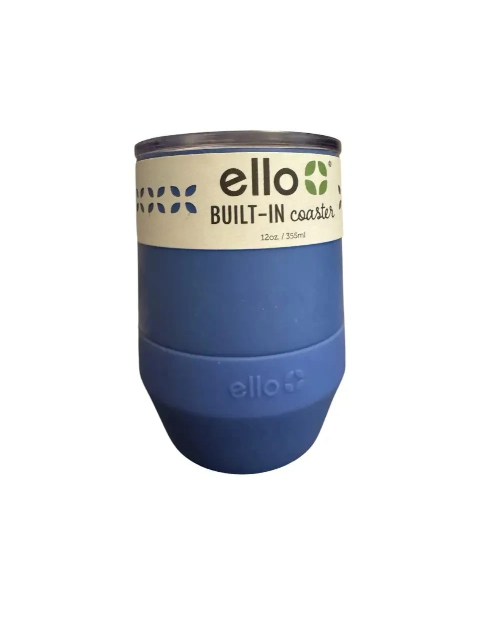 ELLO Vacuum Insulated Blue Goblet 12oz BUILT IN COASTER