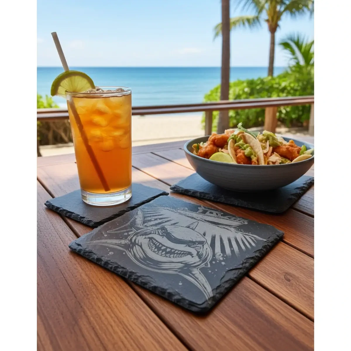Because it is a natural stone, it absorbs a moderate amount of condensation while the surface remains grippy, preventing your drink from sliding around.