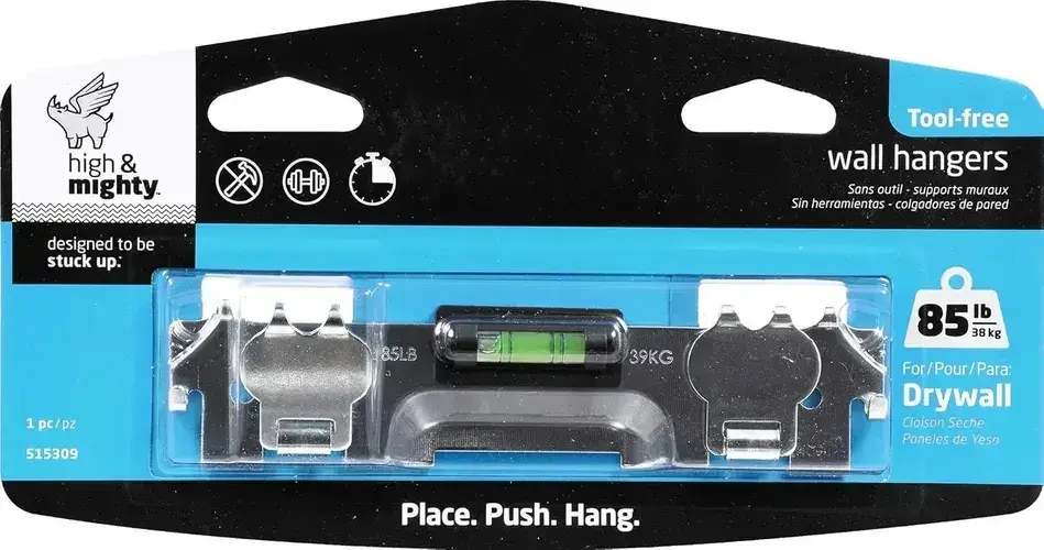 The HIGH & MIGHTY 515309 Tool-Free Picture Hanger Set is your ultimate solution for effortlessly hanging pictures and artwork with a robust, tool-free design. Constructed from heavy-duty steel, this hanger set boasts an impressive capacity of up to 85 lbs, making it ideal for everything from lightweight frames to heavier pieces.