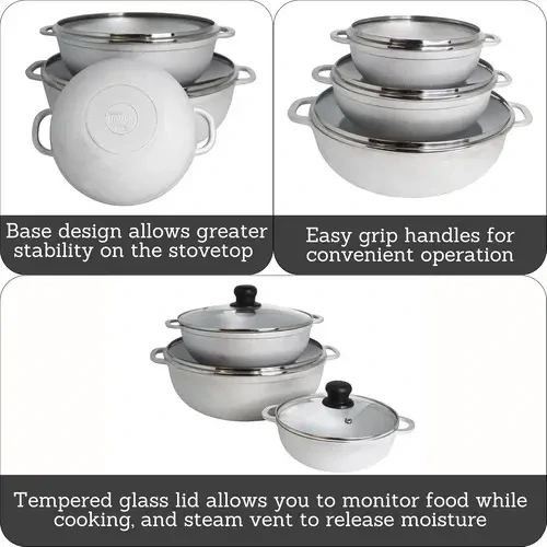 IMUSA 1.5/3.5/7.0qt Cast Aluminum Caldero 3pc Set with Glass Lids