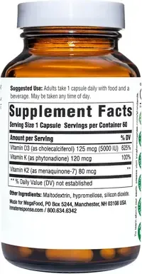 Order INNATE Response Vitamin D3 5000 IU, Immune & Bone Health, 60 Vegan Capsules with K1 & K2 for only $31.99—enjoy free shipping, a 60-day return, and a free gift. Limited stock—don’t miss out on this top Vitamin D supplement at More4Less!