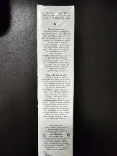 Give your skin the hydration it craves with Jafra Royal Jelly Revitalize Extra Hydration Serum with Vitamin E. Designed to nourish, protect, and restore, this ultra-hydrating serum provides deep moisture and antioxidant support for a plumper, smoother, and more radiant complexion.