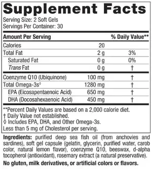 Primary Ingredients | Total Omega-3s (EPA & DHA), Coenzyme Q10 (ubiquinone) |