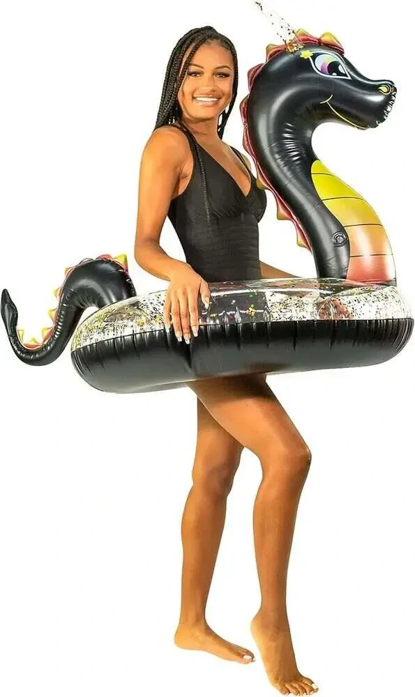 This float is more than just its awesome dragon design. It's filled with mesmerizing, free-floating holographic glitter that catches the sun and shimmers with every ripple. At a massive 40 inches wide, it's big enough for adults to lounge on comfortably. Most importantly, it's built to last. Made from heavy-duty PVC vinyl, it's designed to handle the fun of a busy pool, lake, or beach day. It's time to ditch the plain, boring swim rings and upgrade your relaxation to a mythical level.