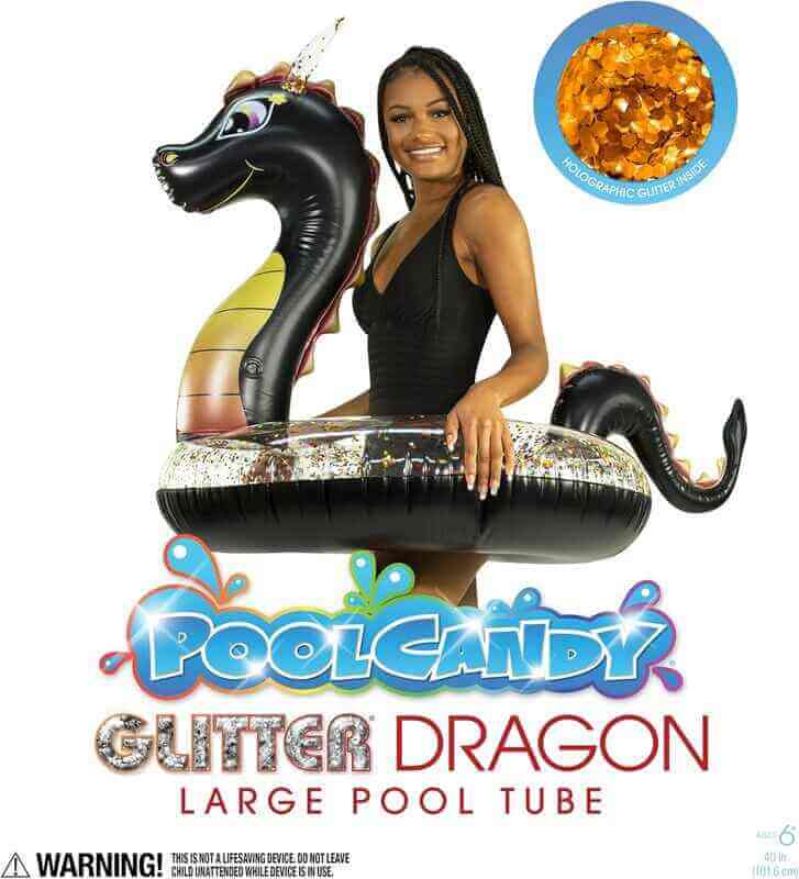 Poolcandy Inflatable 40" inch Glitter Dragon Animal Pool Tube