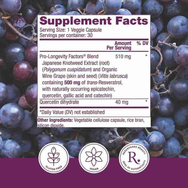 Key Ingredient | Pro-Longevity Factors® Blend (delivering 500mg trans-Resveratrol) |
