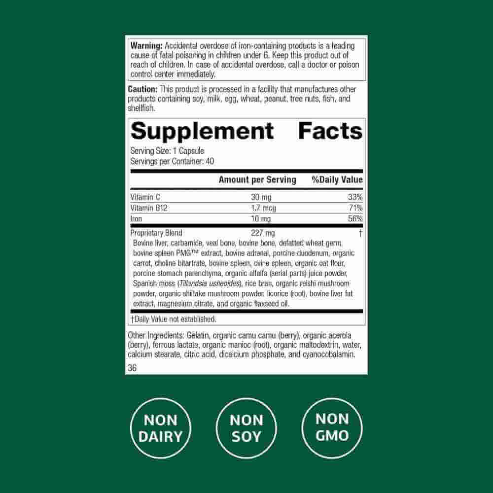 - Whole Food Iron: Includes bovine liver, a natural source of heme iron and cofactors.