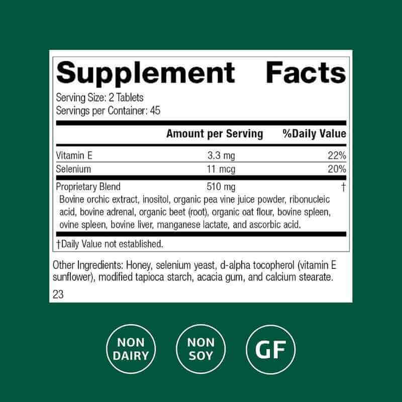 Proprietary Blend | Bovine adrenal, nutritional yeast, organic carrot, organic sweet potato, and more. |