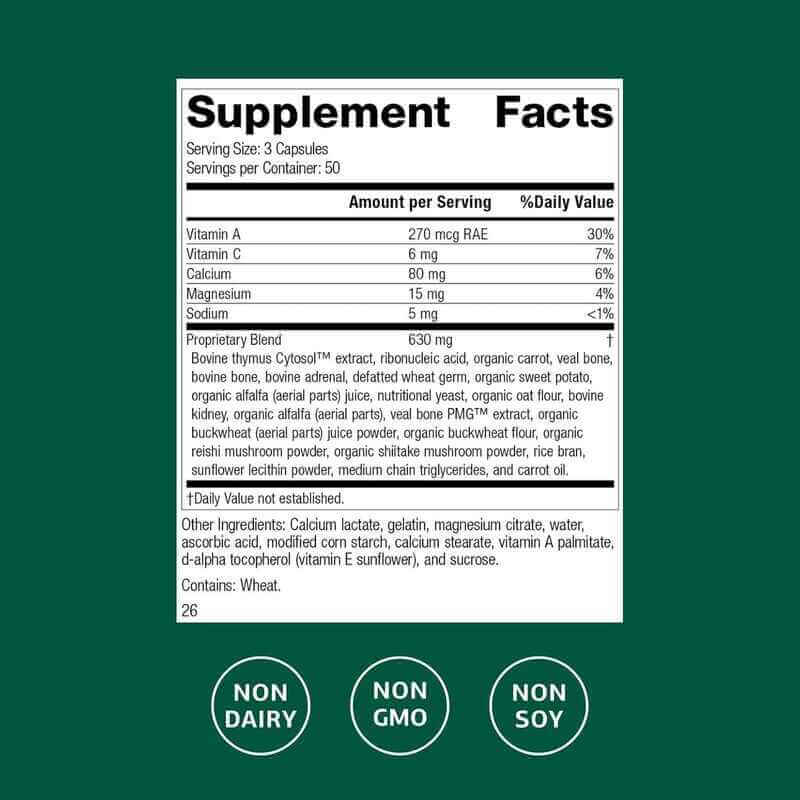Key Ingredients | Bovine Thymus Cytosol Extract, Carrot Root, Calcium, Magnesium |