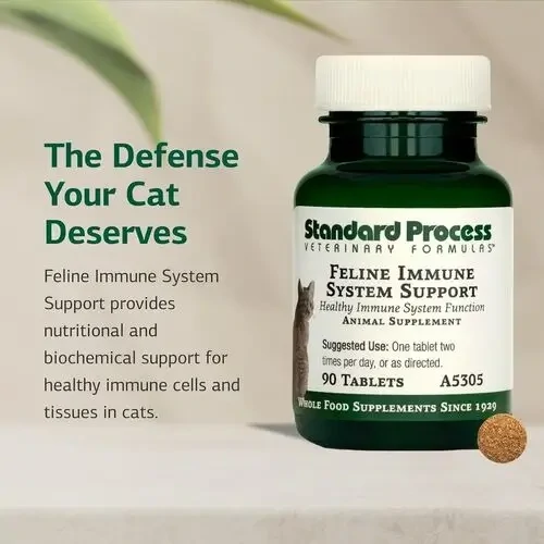 Experience enhanced immune health for your cat with Standard Process Feline Immune Support for just $20.00—featuring whole food ingredients and easy-to-administer tablets, trusted by 500+ buyers, and ships free nationwide!