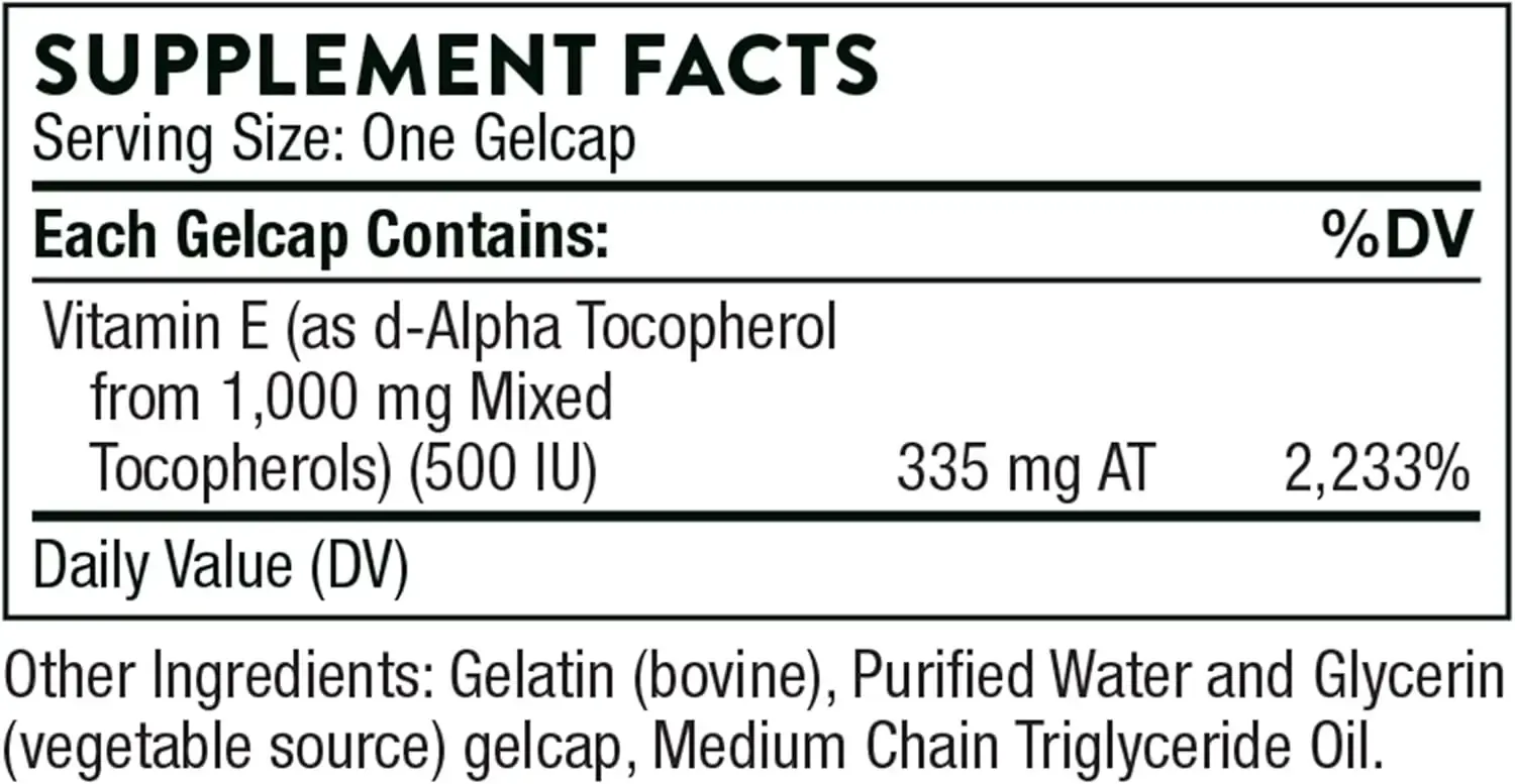 Key Ingredients | Mixed Tocopherols (d-Alpha 500 IU, Beta, Gamma, Delta) |