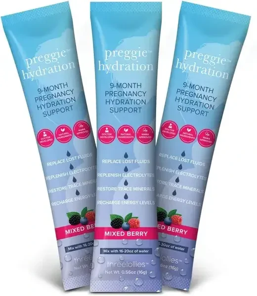 "I love the Three Lollies Preggie Mix Berry Hydration Packets! They're a game-changer for me during pregnancy. The berry flavor is delicious, and I feel so much more energized and hydrated after drinking them. Highly recommend!" - Emily S.