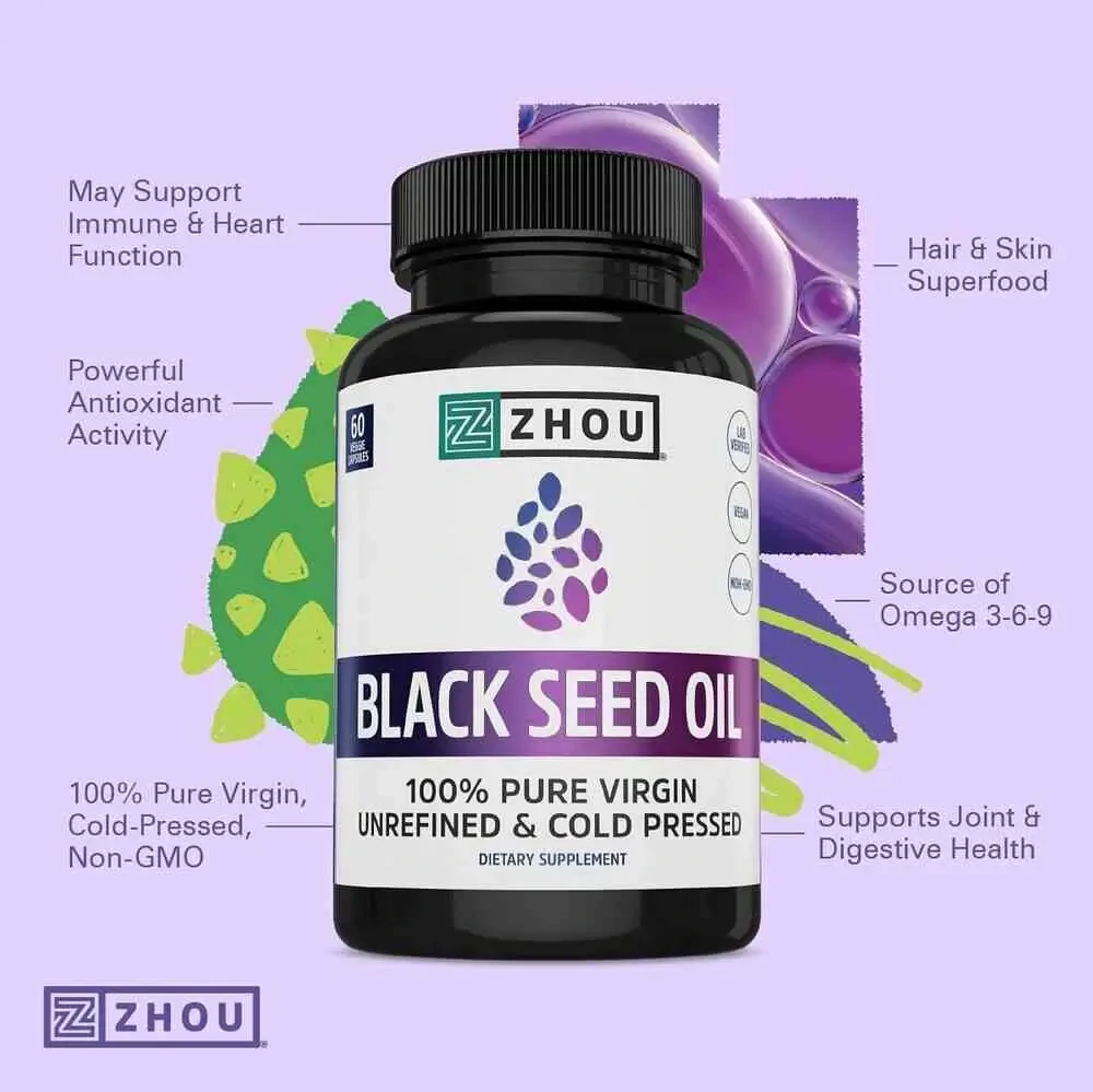 Buy Zhou Black Seed Oil Capsules, Cold Pressed, 60ct – Affordable Quality from More4Less